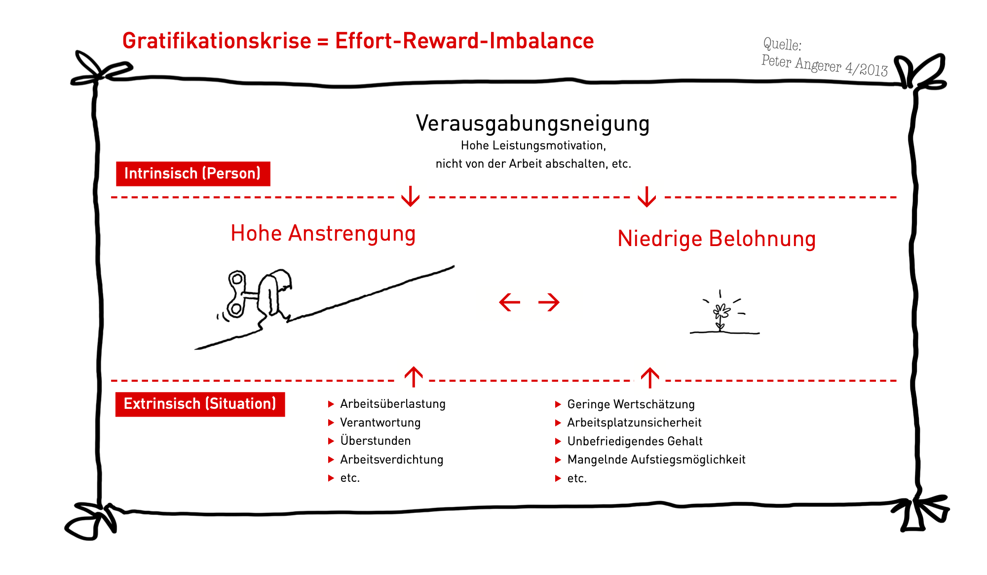 - Oft rascher Leistungsabfall mit starken Schuldgefühlen; konstante Freudlosigkeit und Erschöpfung über Wochen und Monate